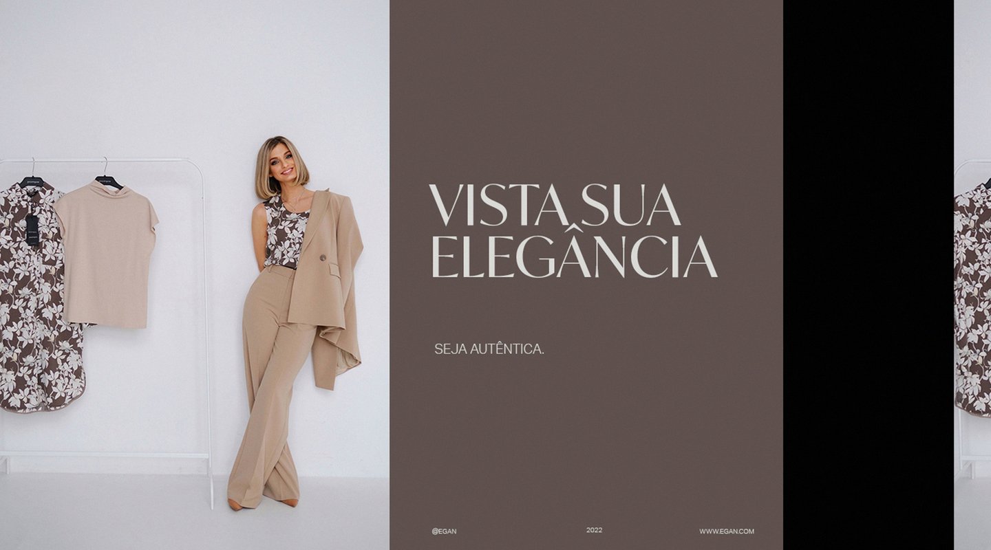 Cada elemento foi desenhado para refletir o comportamento da mulher Egan: segura, contemporânea e consciente das suas escolhas. O uso de materiais com textura natural e o contraste entre o marrom profundo e o branco suave reforçam a sensação de equilíbrio e sofisticação.