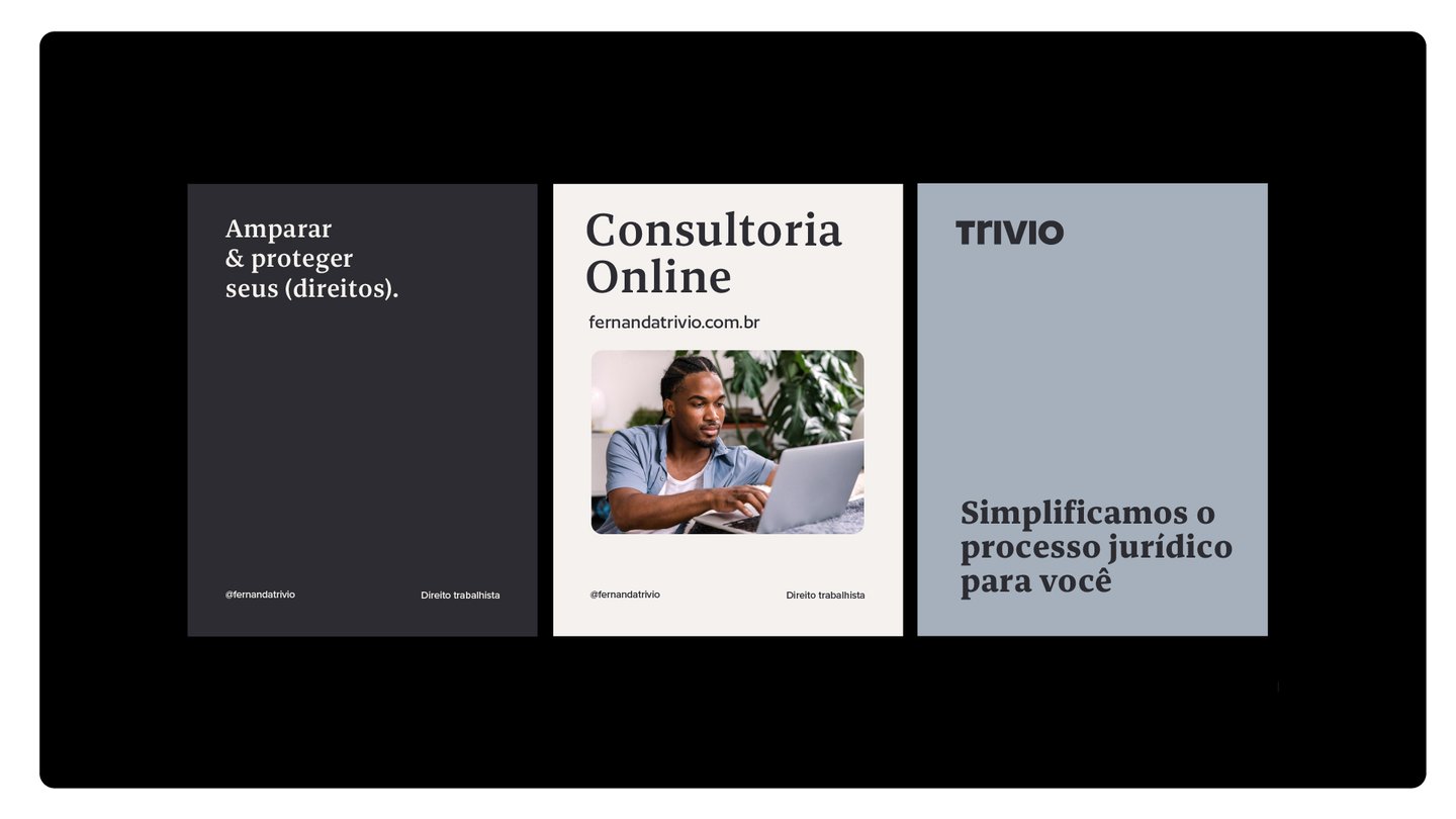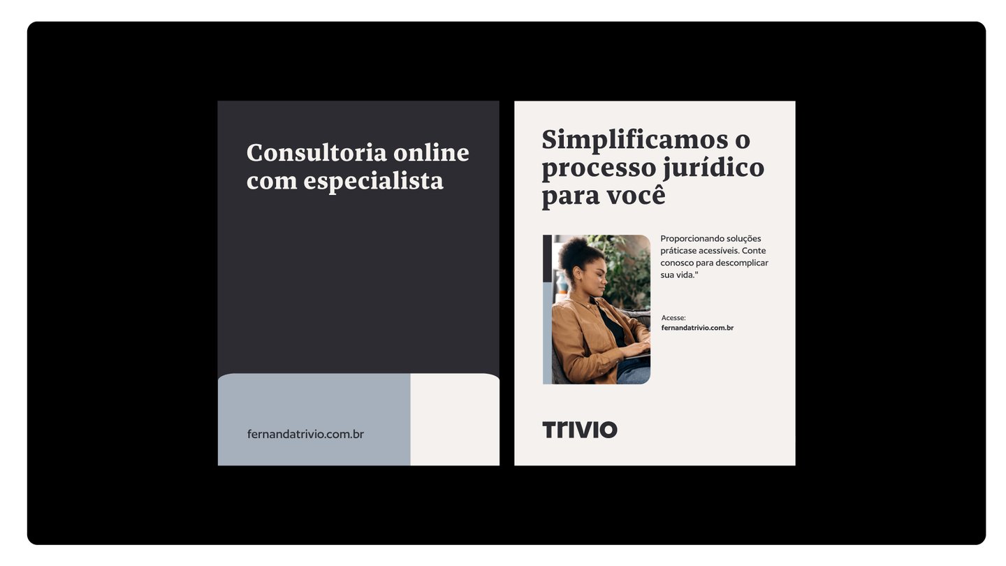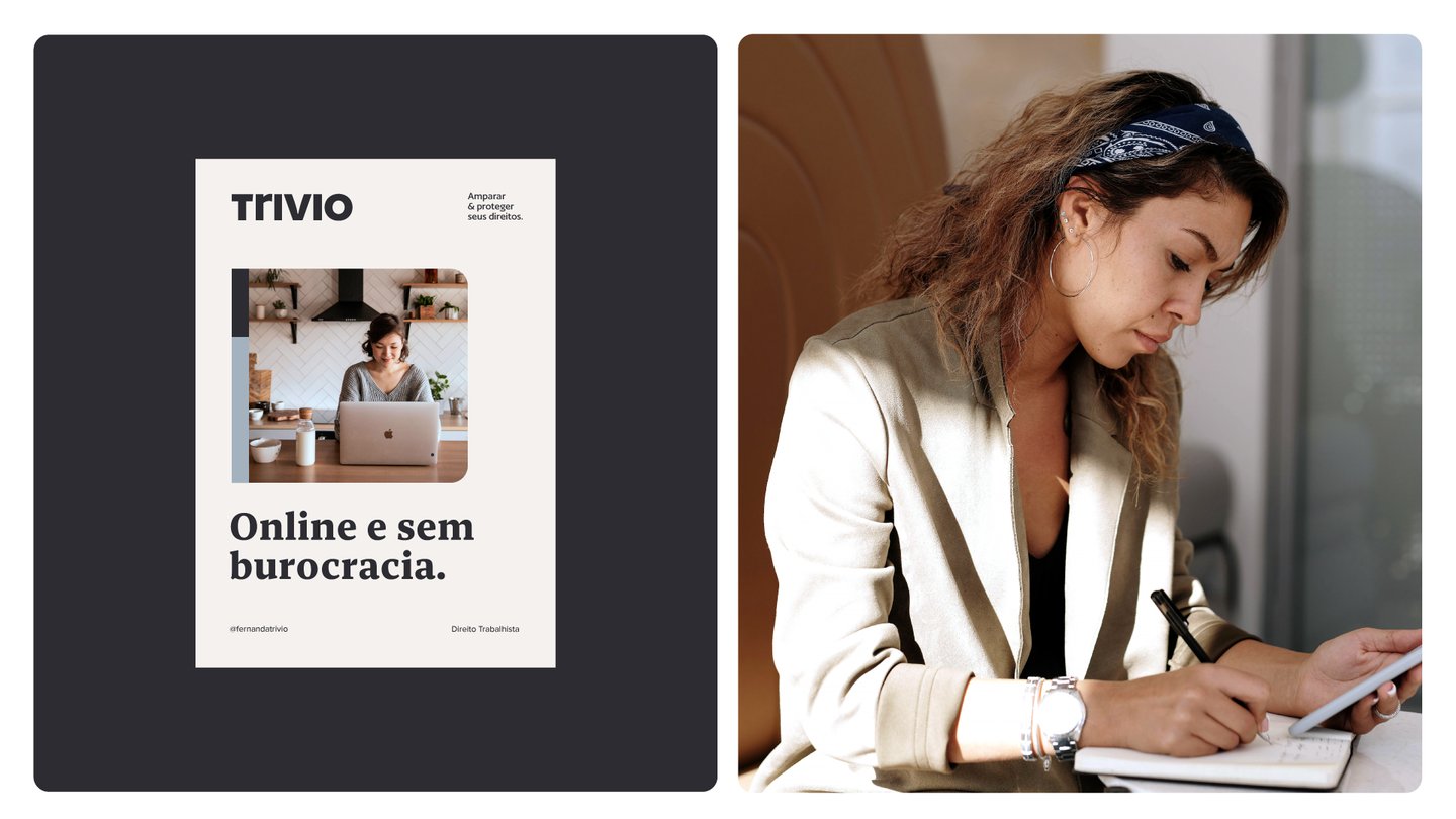 Fernanda Trivio é uma advogada e está iniciando no mercado de assessoria jurídica. Seu intuito é transmitir confiabilidade e segurança aos seus clientes como foco atendimento online. Ela produzirá conteúdos na internet a fim de atrair um público que venha a contratá-la futuramente.