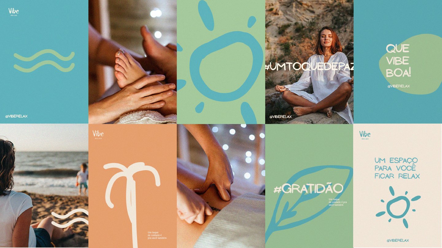 A Vibe relax é um espaço de massagem relaxante á beira-mar, com intuito de incentivar as pessoas a se permitir olhar para dentro, cultivando momentos que lhe tragam felicidade, tranquilidade e paz. Com base na essência da marca, traçamos a estratégia que evoluísse a ideia de "SPA" para um posicionamento claro de movimento com senso de comunidade que incentiva mulheres a tirar um tempinho para se auto cuidarem.